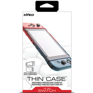 Keep the exterior of the Nintendo Switch™ and Joy-Con™ controllers protected with Nyko's Thin Case. Thin Case goes over the Joy-Cons and Nintendo Switch console to form a protective layer and does not obstruct any buttons, ports or the screen. The included tempered glass screen protector will help guard against damage to the screen. Adding a very minimal increase in size, Thin Case can be left attached when docking the Nintendo Switch. The Joy-Cons can be removed from the console without needing to take off Thin Case.