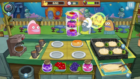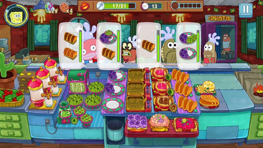 - Fun and Fast-Paced Cooking - Cook and serve up delicious food including Krabby Patties, pancakes, BBQ and more! Get behind the grill as SpongeBob SquarePants to provide speedy service to the residents of Bikini Bottom. You’ll serve tons of familiar faces like Patrick Star, Sandy Cheeks, Squidward and many more! Keep your customers happy and be rewarded with tips, likes and exciting bonuses! Start as a junior fry cook and train to become one of Bikini Bottom’s premier fast-food chefs!