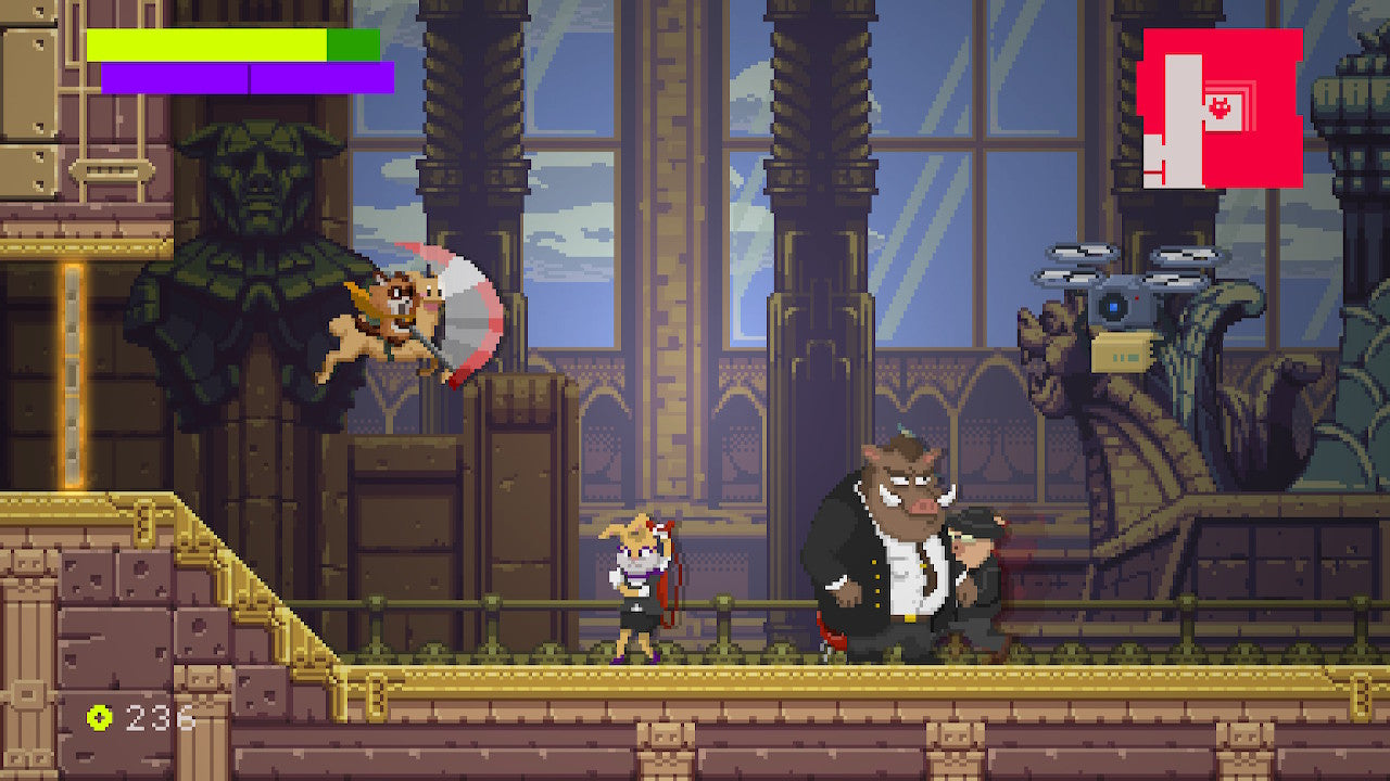 SuperEpic: The Entertainment Waris a Metroidvania style adventure with a humorous and satirical tone. It’s a nonlinear fast-paced action-adventure game, heavy on exploration and combo-based combat, which stars a raccoon and a llama in their quest to save videogames as we know them.