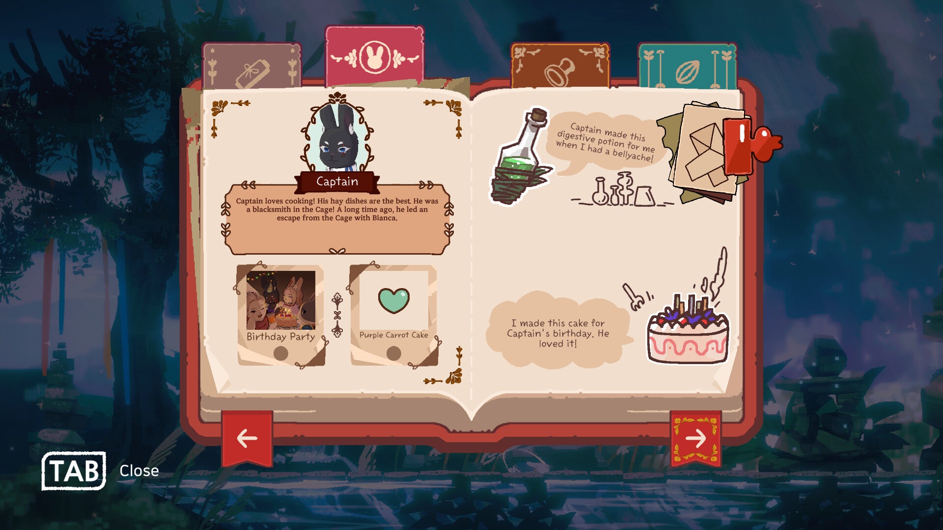 - Liebe's Diary - You can check the collectibles in Liebe's Diary. Collectibles include maps with destinations marked, information of other rabbits, photocards, seeds, and items. 'Liebe's Diary' will be filled in more detail by your actions!