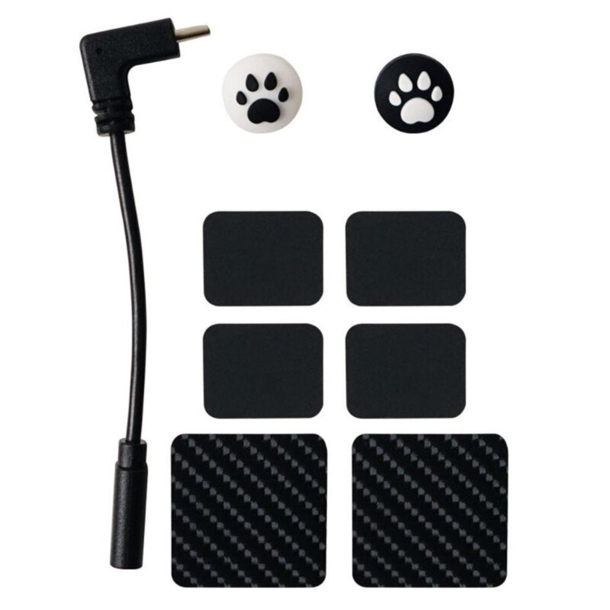 Include 2pcs joystick cover, 2pcs tempered glass film, 6pcs stickers, 1pc adapter cable, 1 bag tools kit, does NOT include the game console.