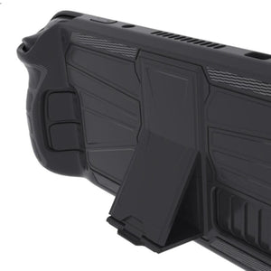 Foldable kickstand behind the game console housing.