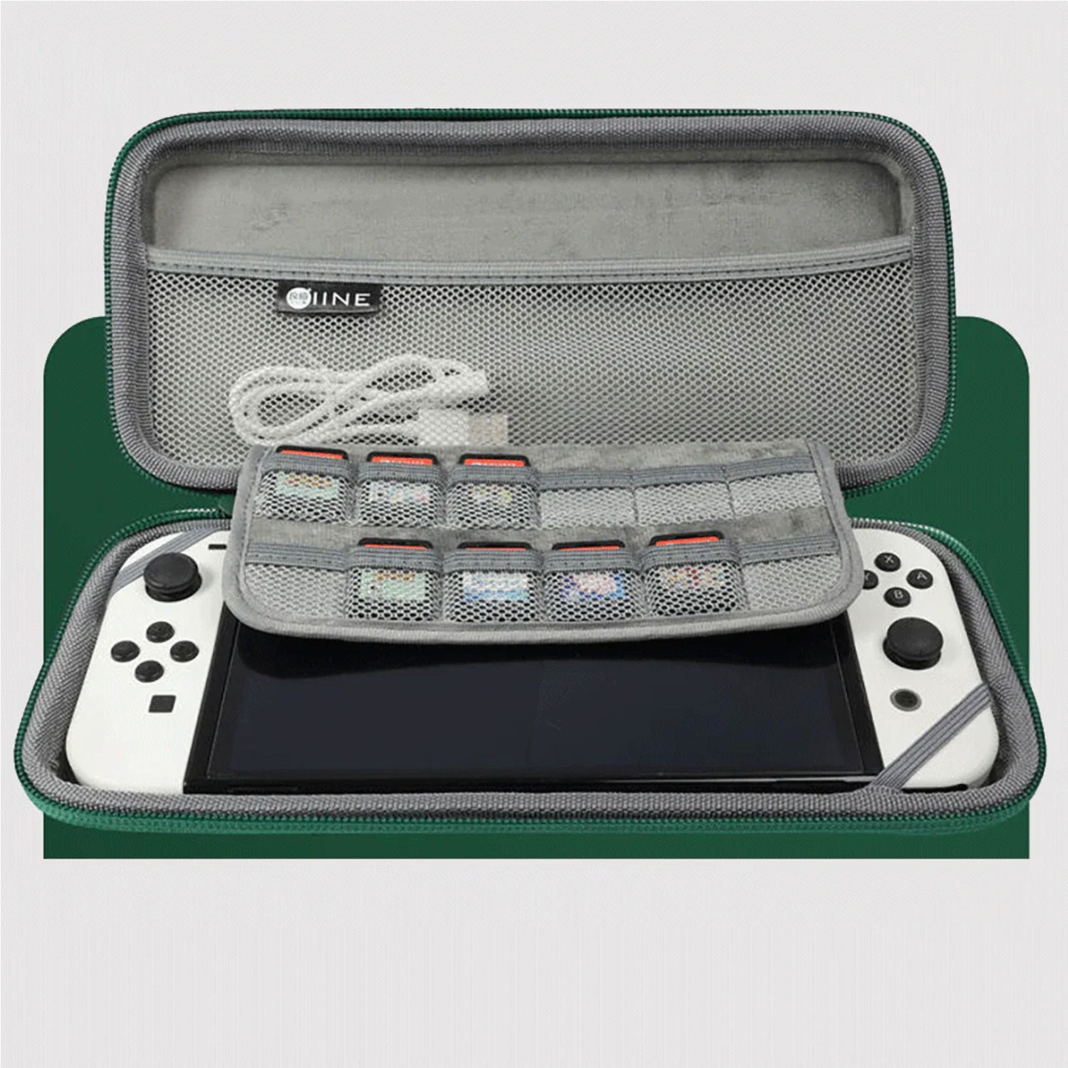 This Storage Bag is for the latest Nintendo Switch OLED, could keep whole set Switch into the bag, not need to remove. Creative design allows for efficient storage and easy transportation while premium material ensures a long-term performance, it is very travel friendly. Durable hard shell case protects Nintendo switch from drops and scratches.