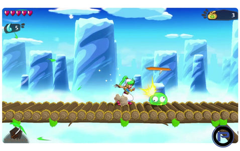 Asha, the warrior protagonist of the game, is involved in a serious incident that will affect the survival of her world. Our green-haired heroine doesn’t have to save the world all alone and sets off on an adventure with her cute flying friend, the blue Pepelogoo. Asha and the Pepelogoo have to work together to become the heroes the world needs them to be. The road ahead is long – will they be able to save their world?