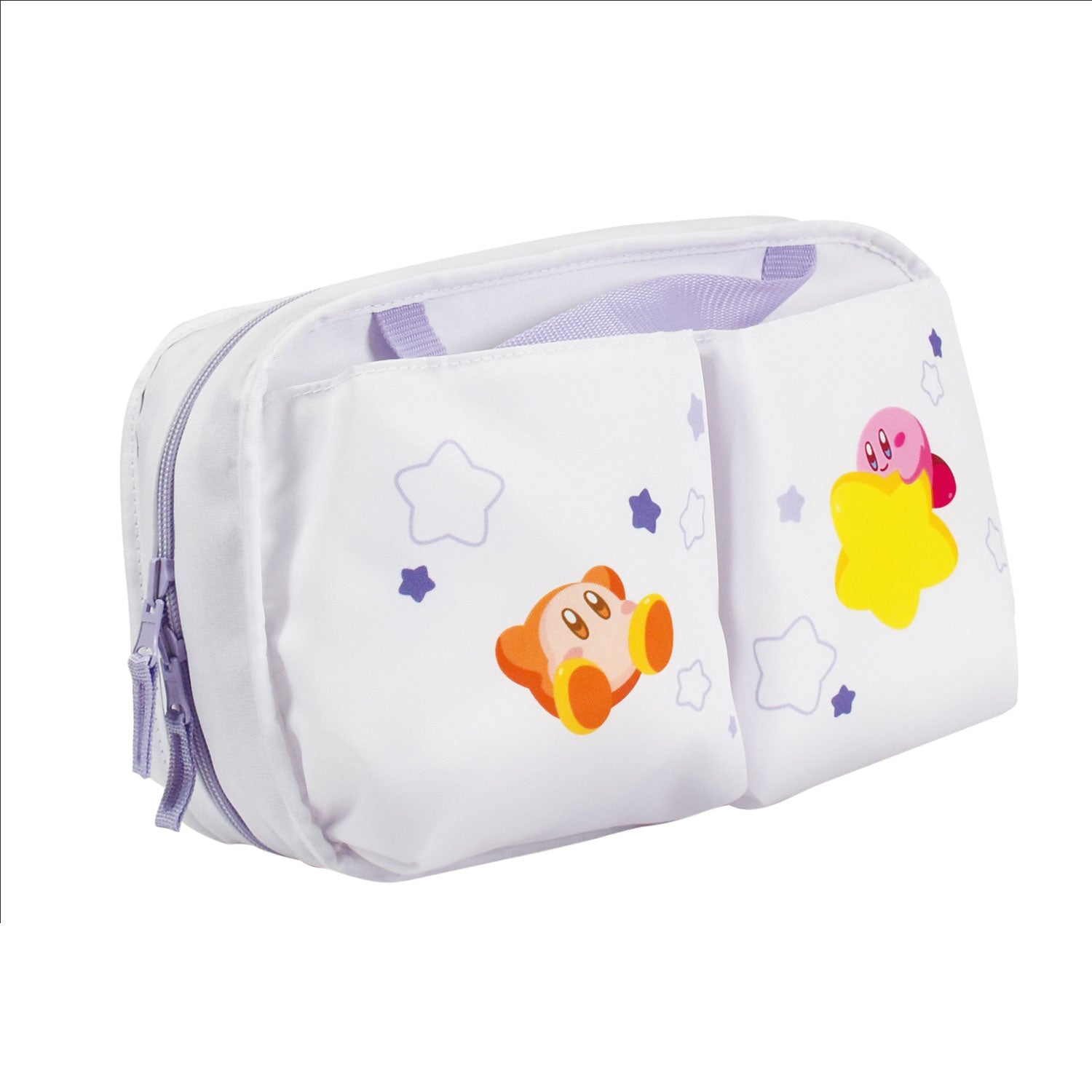 The front showcases Kirby and Waddle Dee peeking out of a pocket, while the reverse side features the pair floating across a starry sky for an extra-cute accent.