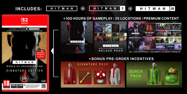 HITMAN World of Assassination brings together the best of HITMAN, HITMAN 2, and HITMAN 3, including the main campaign, contracts mode, escalations, elusive target arcades, and featured live content.